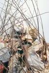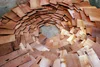 DETAIL: From the Bottom on Down, wood/wood chips/newspaper/branches/twine/graphite/kozo-shi paper/nail/latex paint, 2016