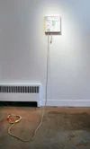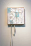 O.B. Line, 10 1/2" X 10 1/2" X 12' (rope length), grass paper/watercolor/wood/rope/electrical tape/twine/duct tape, 2016